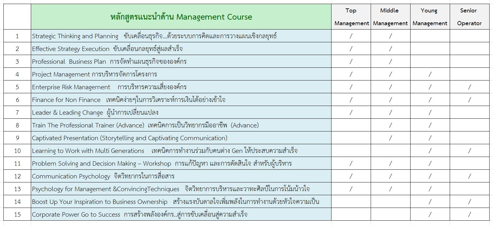 หลักสูตรอบรมด้าน Management